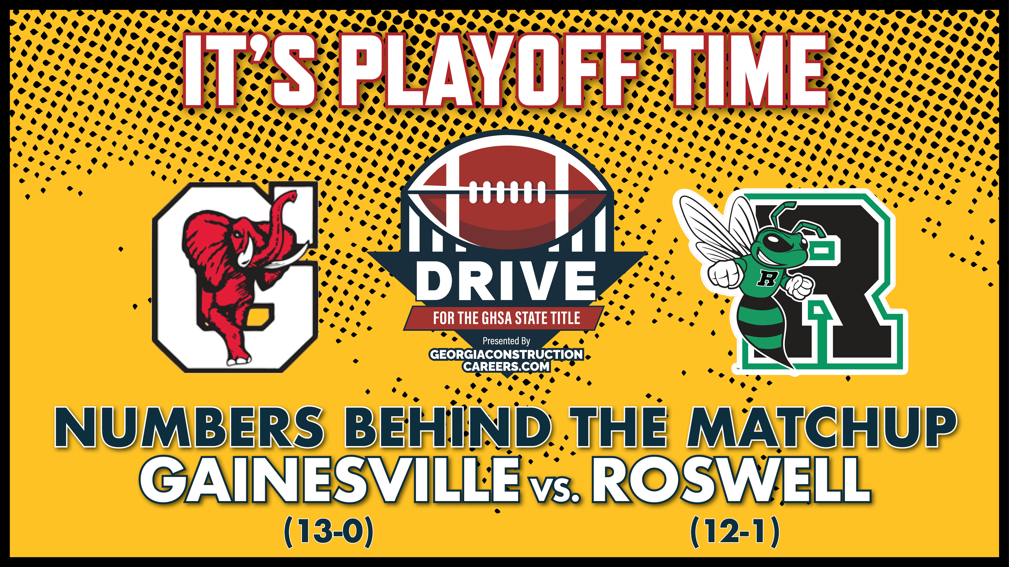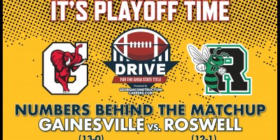 Here is a look at the numbers behind this week’s ‘Drive for the GHSA State Title’ playoff game between Roswell and Gainesville in a Class 6A semifinal matchup! Follow the link to watch the game this Friday at 8 p.m. on WPCH.